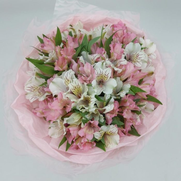 Нежные и стойкие альстромерии в лаконичнгм монобукете. Такой букет всегда уместен и подойдёт для любого повода: День Рождения, именины, годовщина свадьбы, рождение ребенка, 8 марта, День Святого Валентина, выпускной и т.д. Можно вручить маме, сестре, подруге, коллеге, учителю, любимой.