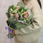 Монобукет 13.1 пион тюльпаны розово-сиреневые