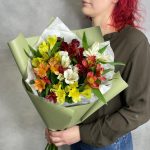 Очень стойкий букетик из разноцветных альстромерий. Подойдёт для любого случая!