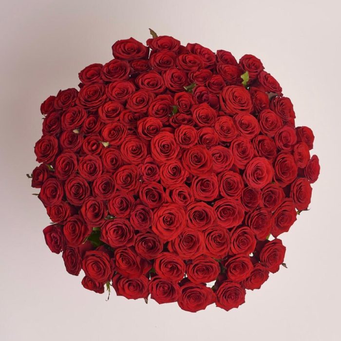 червона троянда – 101 шт. стрічка бархатна – 1 шт.