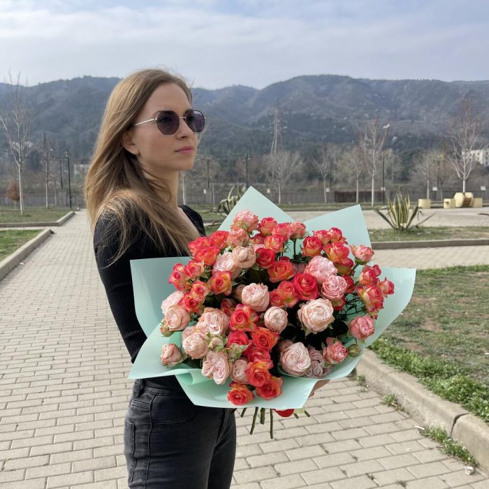 Разноцветный микс из веточной розы может включать в себя несколько из этих цветов, а также другие оттенки и комбинации цветов. Доставка по Тбилиси бесплатно!