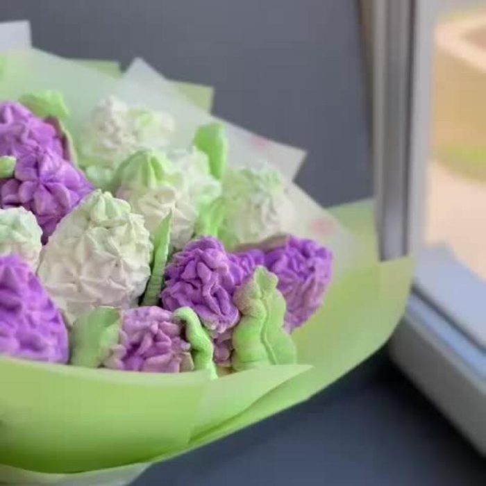 “Атлас☁️” – цветочная композиция с зефиром в деревянном ящике