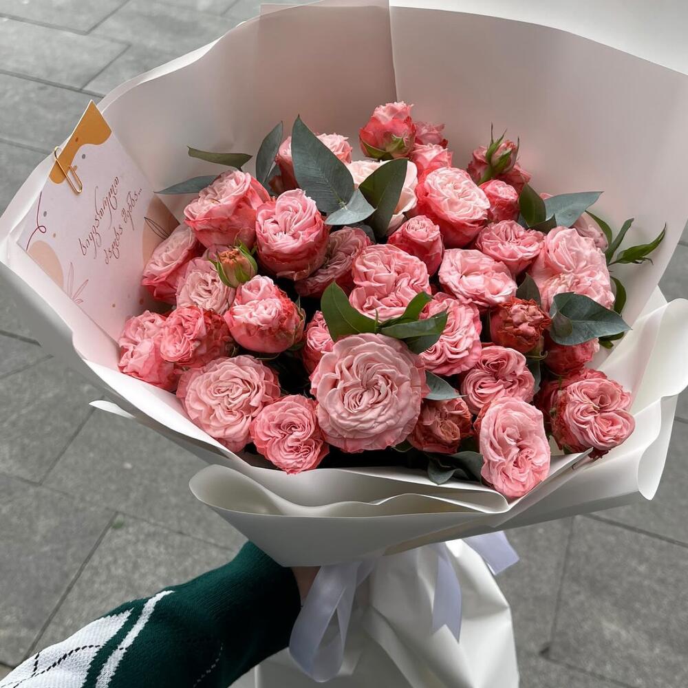 Гвоздики, Кустовые розы, Лизиантусы, Пионовидные розы, Розы