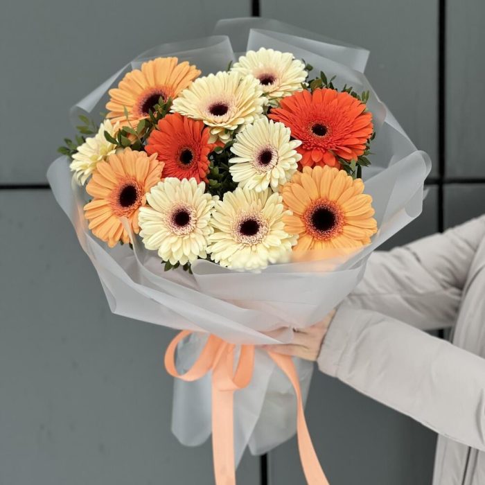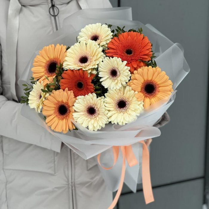 Букет Луч солнца из гербер и зелени