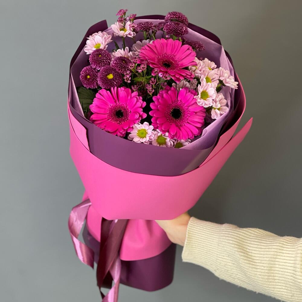 Букет с малиновой герберой “Любимка”