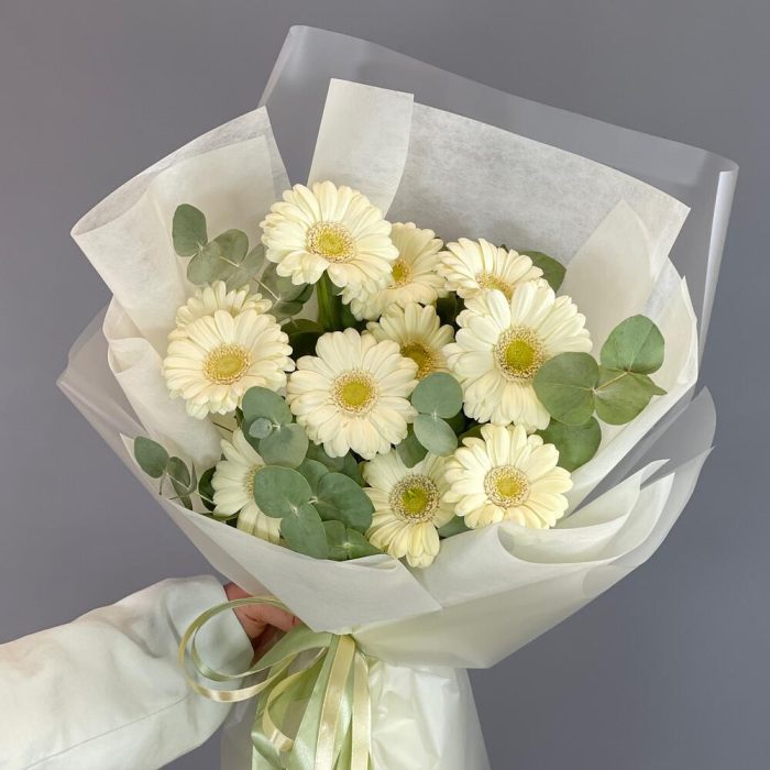 Букет с нежной герберой “Ванильный чизкейк”