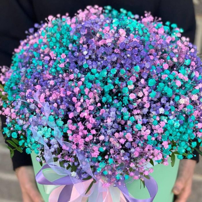 Гипсофила – 11 шт.Оазис флористический – 2 шт.Коробка шляпная – 1 шт.Лента атласная – 2 шт.