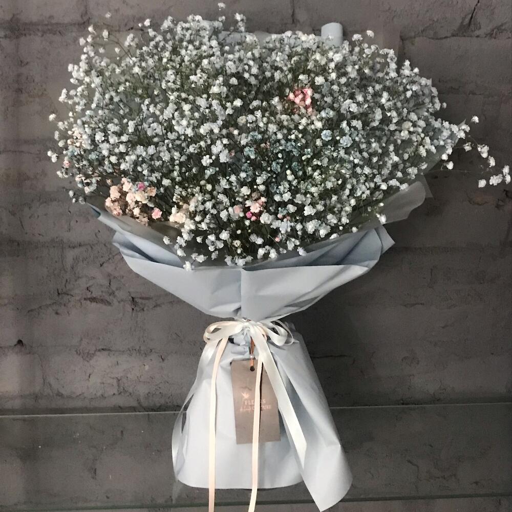 Упаковка дизайнерская – 1 шт.гипсофила голубая свежая – 10 шт.