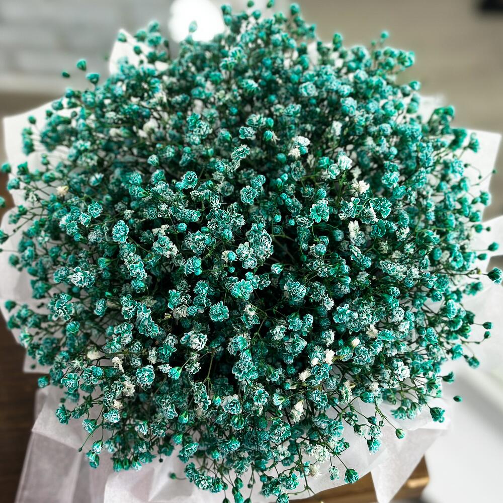 Гипсофила – 7 шт.Тишью – 3 шт.подкормка для срезанных цветов – 1 шт.инструкция по уходу за цветами – 1 шт.ленты атласные – 2 шт.шляпная коробка с лентами и оазисом – 1 шт.