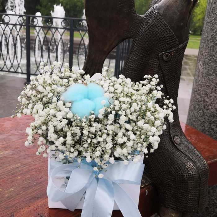Гипсофила – 3 шт.Хлопок – 1 шт.Лента атласная – 1 шт.Оазис флористический – 1 шт.конверт картонный – 1 шт.