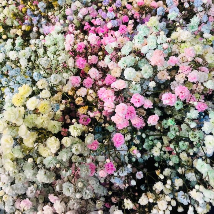 гипсофила радужная голландская – 15 шт.Упаковка дизайнерская – 4 шт.Лента атласная – 1 шт.
