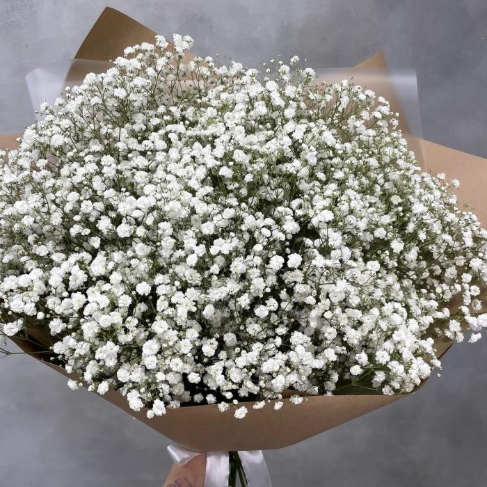 Охапка белоснежной свежей пушистой гипсофилы – что может быть прекраснее для цветочного подарка молодой девушке? Лёгкость, изящество и чистота – именно об этом говорят эти цветы.