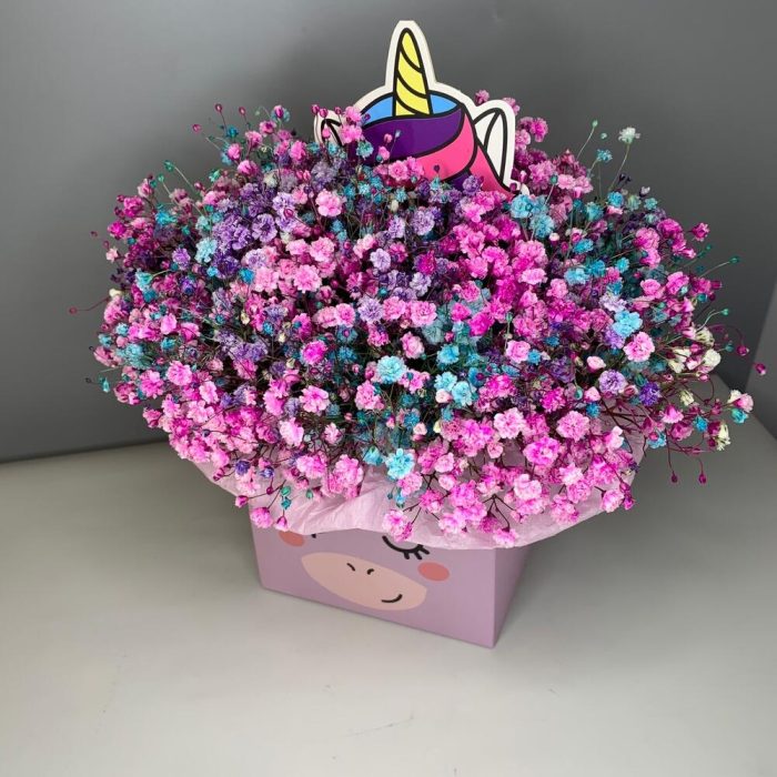 Красочная Гипсофила в коробке Единорог