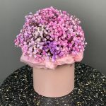 Шкатулка «Пинк» с клубникой в шоколаде и гипсофилой - 16 ягод и 7 гипсофил