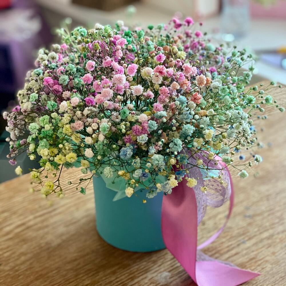 Шляпная коробка крашеной гипсофилы