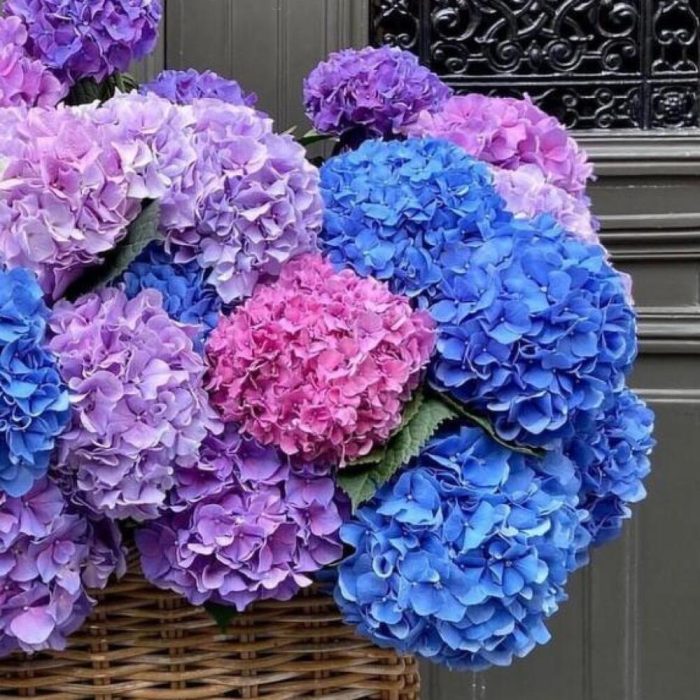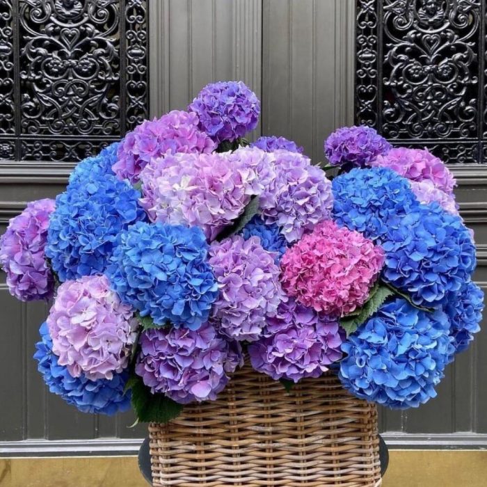 Корзина с 29 яркими гортензиями