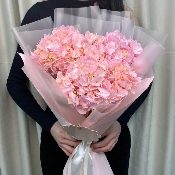 Розовый букет из 3 гортензий «Любовь»
