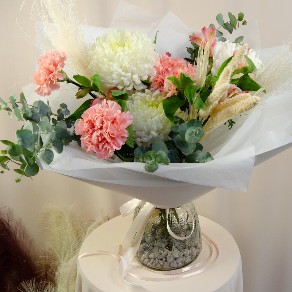 Гвоздики, Кустовые розы, Пионовидные розы, Розы