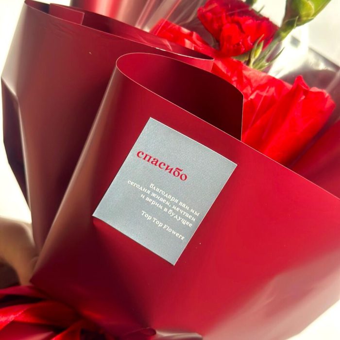 Гвоздика – 5 шт.Открытка – 1 шт.Упаковка дизайнерская – 1 шт.