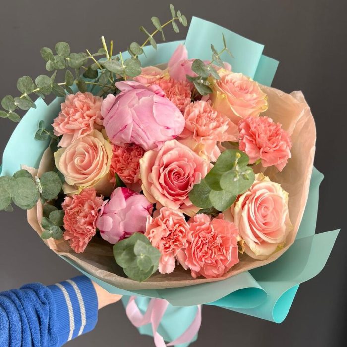 Гвоздики, Кустовые розы, Пионовидные розы, Розы