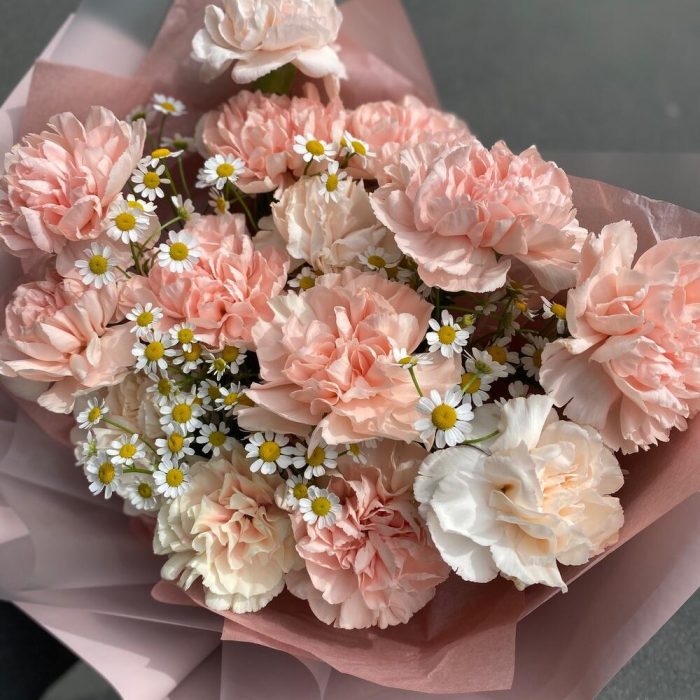 Гвоздика – 15 шт.Матрикария – 4 шт.Упаковка – 2 шт.Лента – 2 шт.
