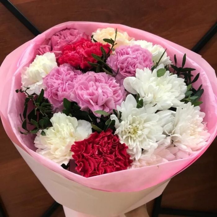 Гвоздики, Кустовые розы, Лизиантусы, Пионовидные розы, Розы