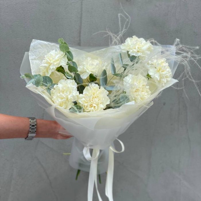 Диантус – 7 шт. Эвкалипт пучок – 1 шт. стипа – 2 шт. Упаковка дизайнерская – 1 шт.
