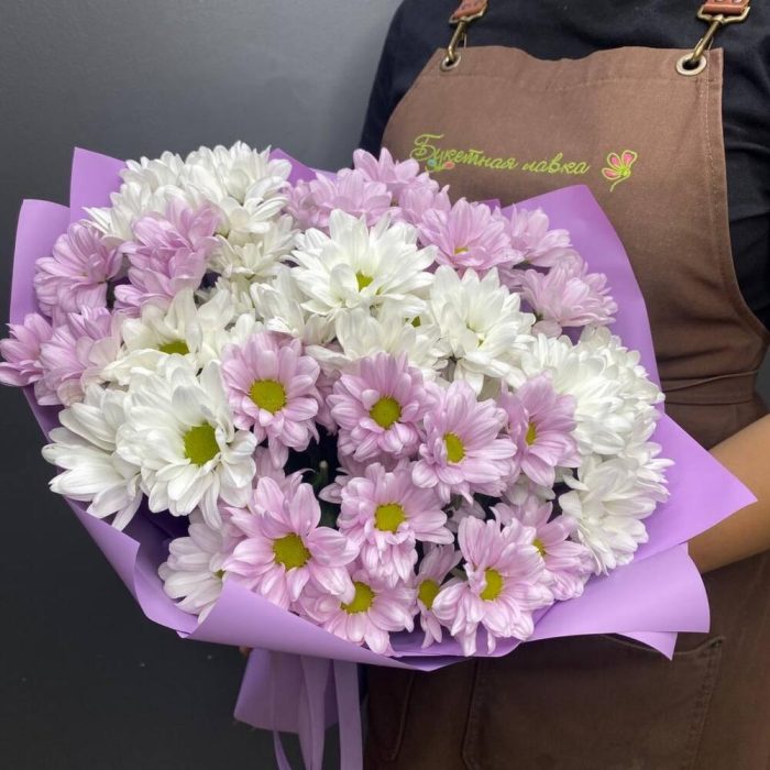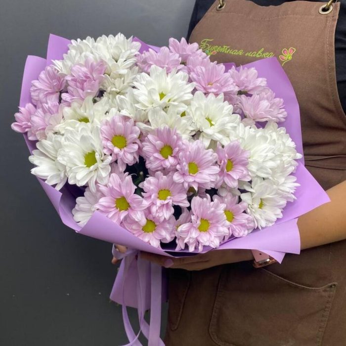 Хризантема кустовая – 9 шт.Лента атласная – 1 шт.