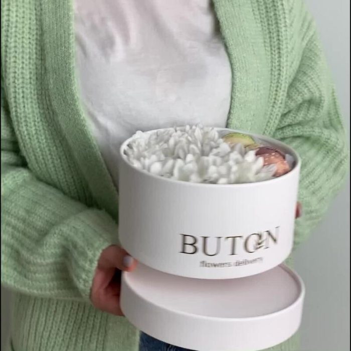 “Сиреневый туман” – композиция из гипсофилы в шляпной коробке