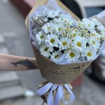 Хризантема кустовая – 5 шт.Ромашка кустовая – 2 шт.Сухоцветы – 3 шт.Упаковка дизайнерская – 1 шт.Кризал (подкормка) – 1 шт.