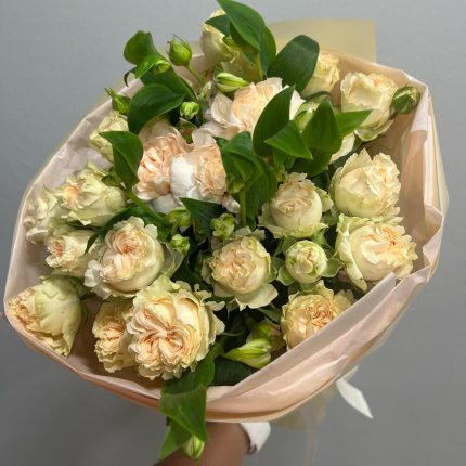 Альстромерии, Гвоздики, Кустовые розы, Лизиантусы, Розы, Хризантемы