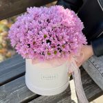 “Сиреневый туман” – композиция из гипсофилы в шляпной коробке