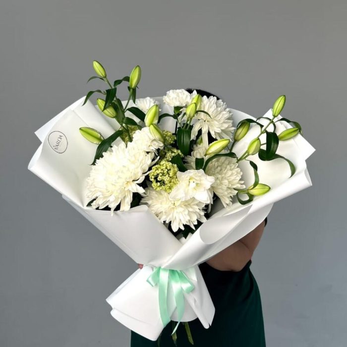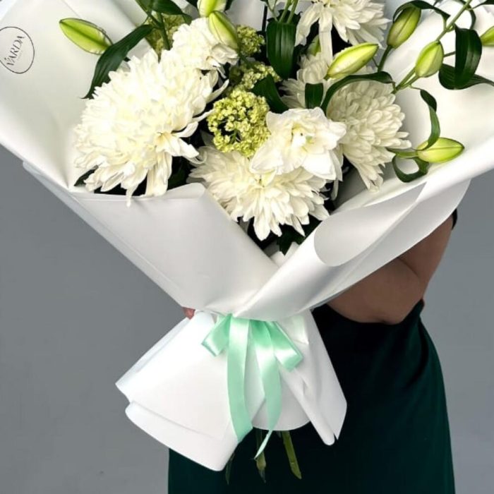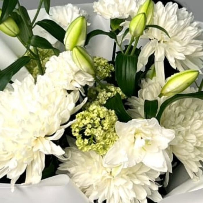 Лилия белая – 3 шт. Одноголовая хризантема – 4 шт.