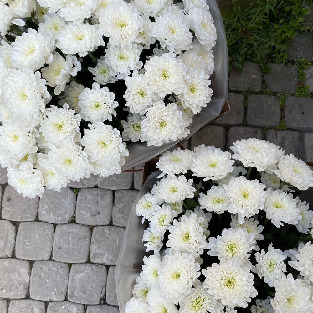 Стильный монобукет из хризантем