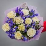 Букет 9 белых роз и 17 ирисов
