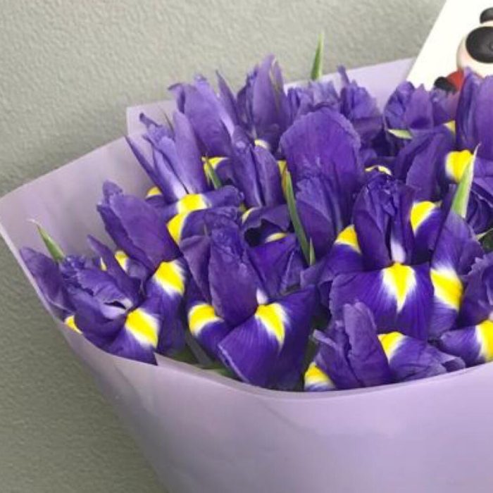 Ирис – 25 шт.Лента атласная – 2 шт.Фисташка – 4 шт.Открытка – 1 шт.Упаковка дизайнерская – 1 шт.