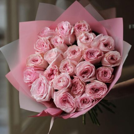 эустома белая – 9 шт. эустома розовая – 8 шт. оформление калька – 1 шт.
