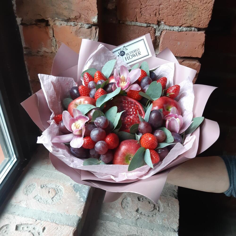 Съедобный букет из орхидей, фруктов и ягод "Сливовица"
