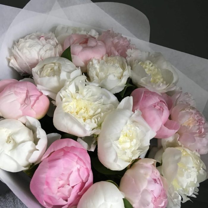 Пион – 19 шт.Лента атласная – 2 шт.Упаковка дизайнерская – 2 шт.
