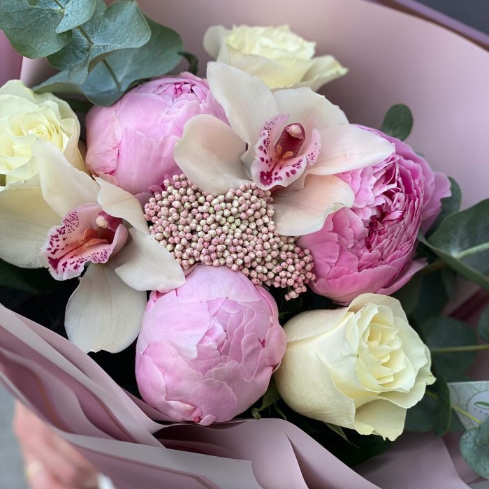 Альстромерии, Кустовые розы, Орхидеи, Розы, Хризантемы