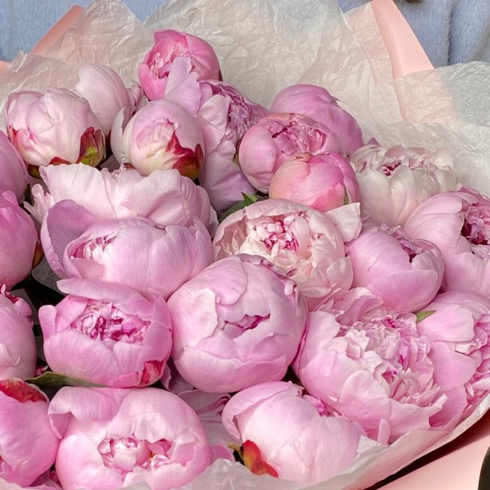 Пышный букет 25 розовых пионов