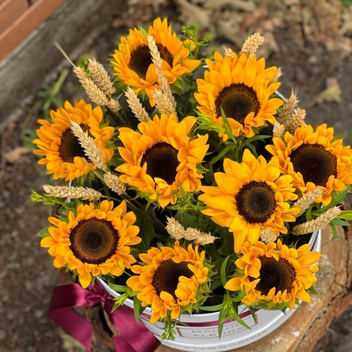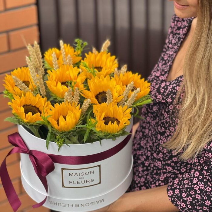 9 подсолнухов в коробке