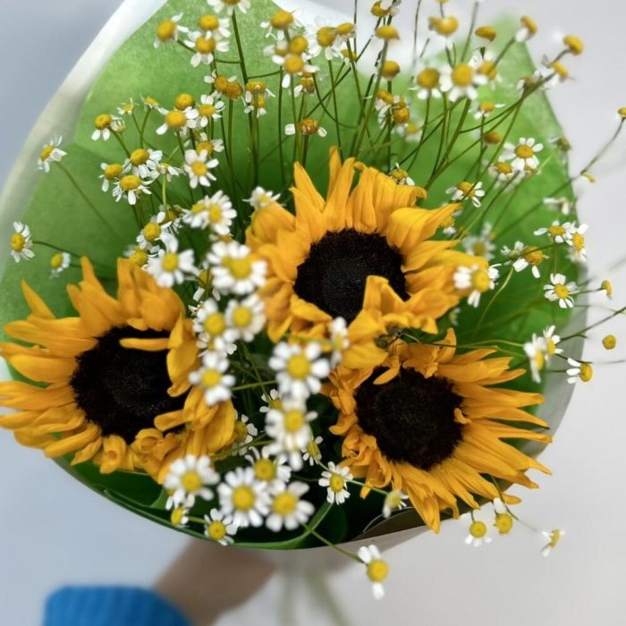 Подсолнух – 3 шт.Матрикария – 3 шт.Оформление – 1 шт.