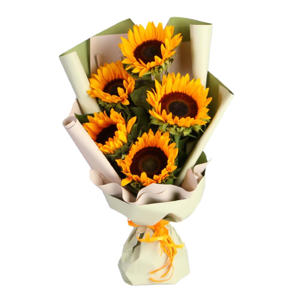 Подсолнух – 5 шт.бумага крафт – 1 шт.Рафия – 1 шт.Салал – 1 шт.