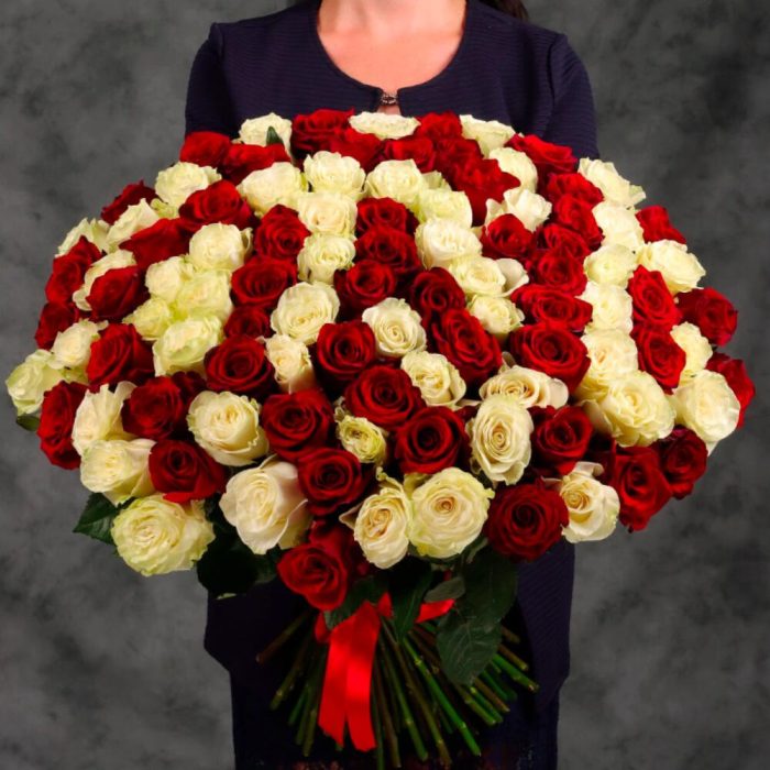 Огромный букет из 101 красной и белой.