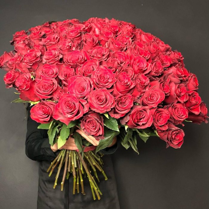 Роза Эквадор 60 см – 101 шт.Лента атласная – 3 шт.