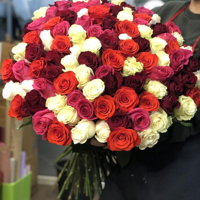 Роза Эквадор 60 см – 101 шт.Пленка прозрачная – 1 шт.Лента атласная – 1 шт.