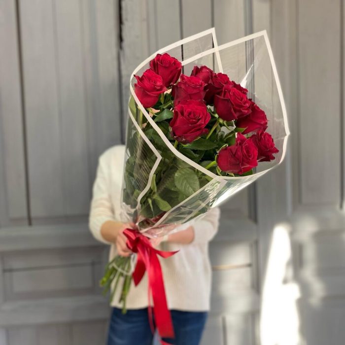 Роза Эквадор 70 см – 11 шт.Упаковка дизайнерская – 1 шт.Лента атласная – 1 шт.