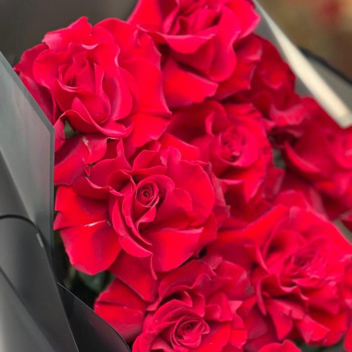 Роскошные красные розы сорта Freedom в стильном черном оформлении как отличный подарок для ваших близких ❤️