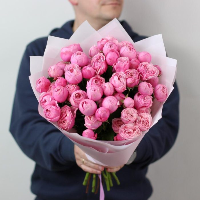 15 кустовых пионовидных роз сильва пинк. Букет 24 KimFlo